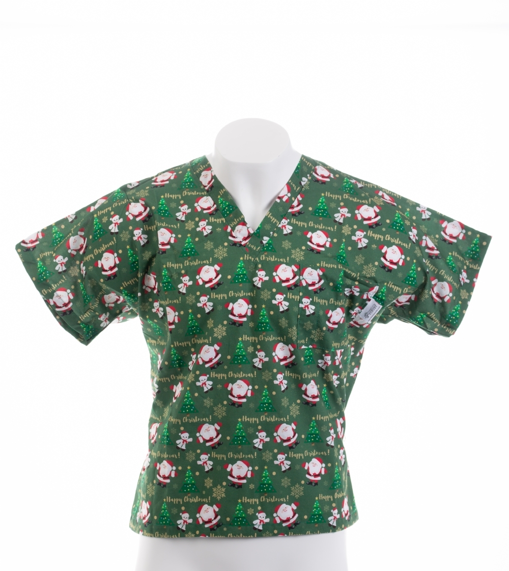 Father Christmas And The Tree Short Sleeve Scrub Top 100% Cotton