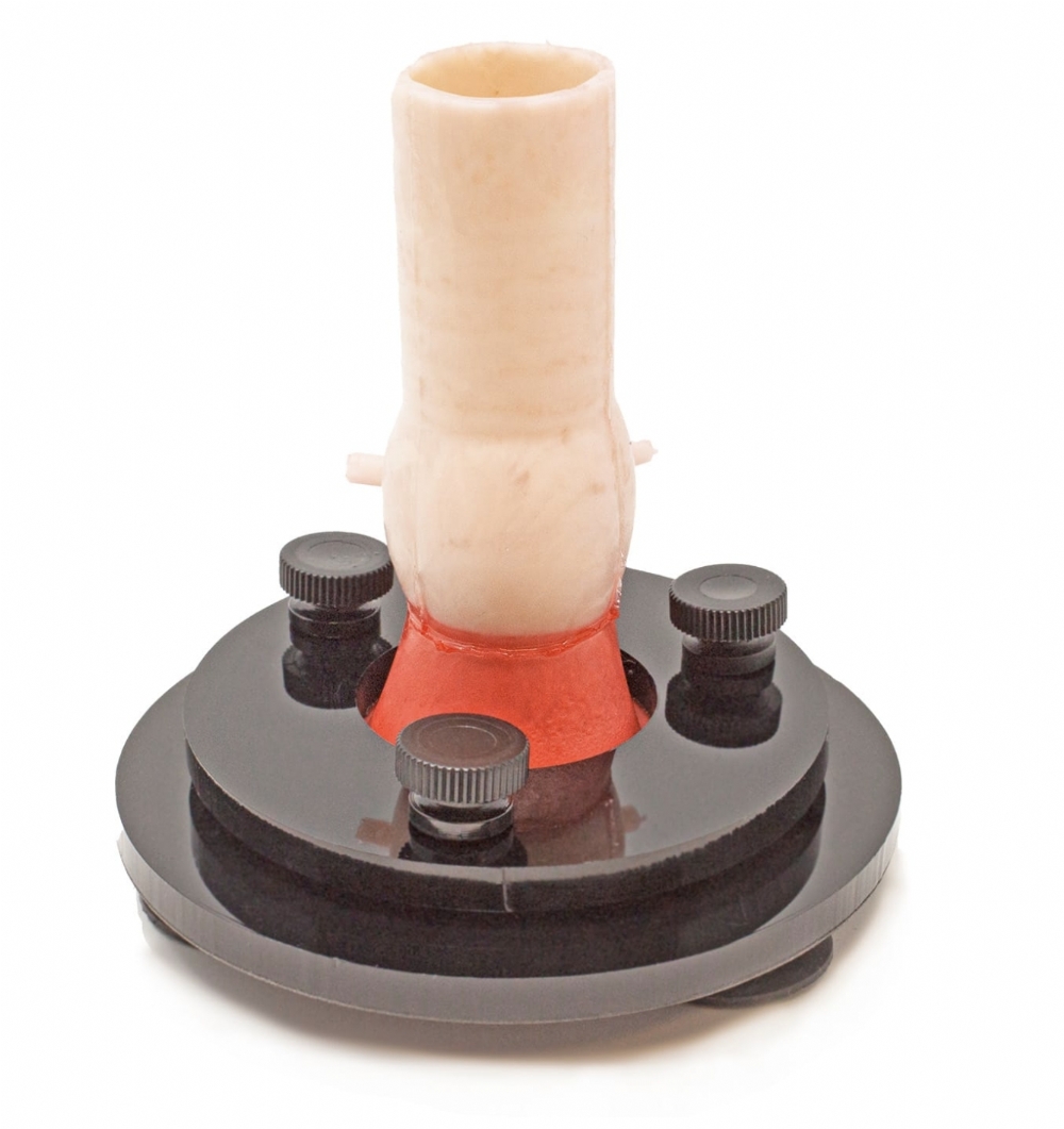 The bicuspid valve simulator is designed to replicate real cardiac tissue behaviour.