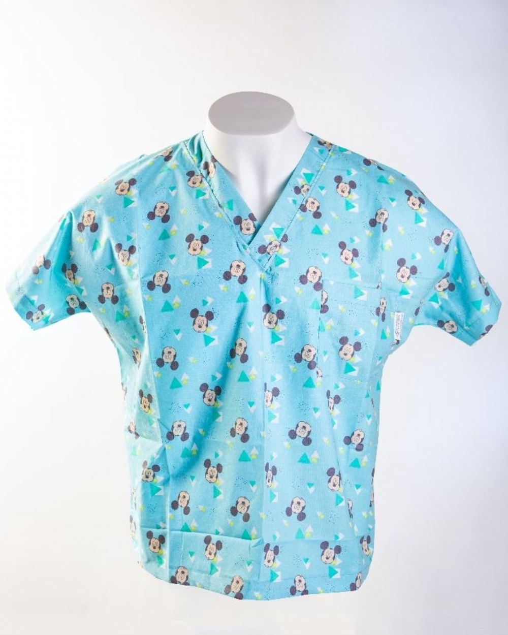 Disney Sleepy Mickey Mouse Short Sleeve Scrub Top 100% Cotton