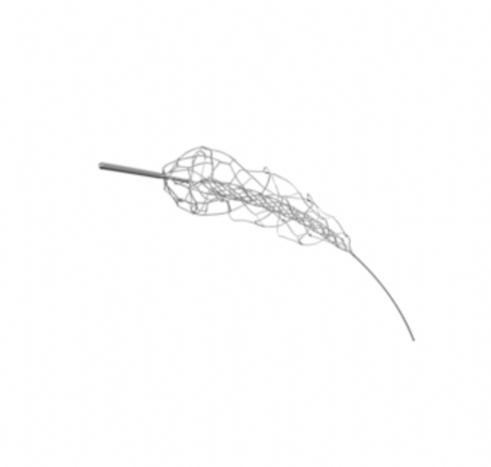 The device features a three-dimensional nitinol stent-like distal assembly mounted on a tapered nitinol shaft. It is supplied pre-loaded within a dedicated Insertion Tool to support controlled deployment and procedural efficiency.