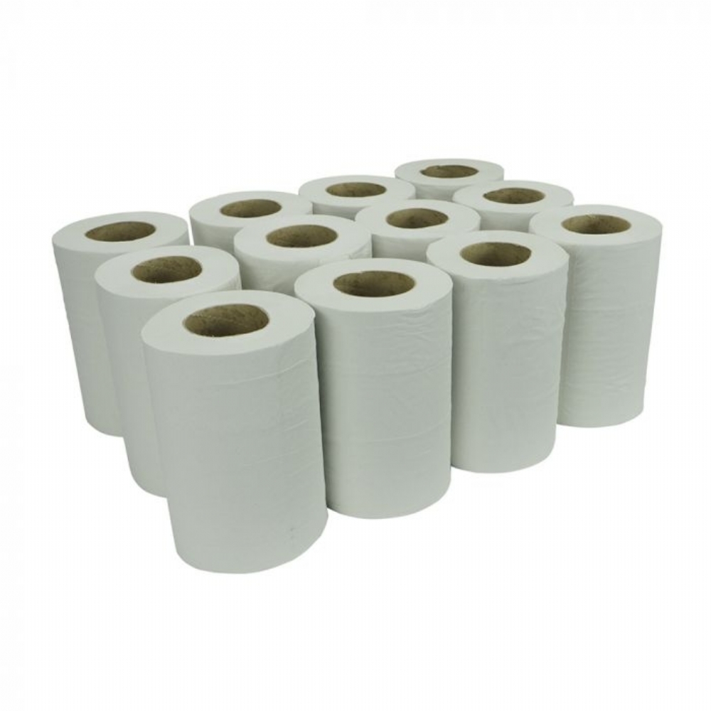 High quality mini centrefeed rolls. Made from 100% recycled paper and ideal where space is of a premium. Used as a general wiper or for hand drying. White roll ensures no colour bleed when being used as a wiper with chemicals.
