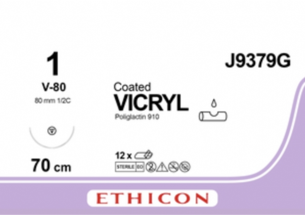 Ethicon COATED VICRYL Polyglactin 910 Braided Absorbable Surgical Suture – USP 1 – 70 cm – Violet – Single-Armed Taper Point V-80 Needle 48 mm, 1/2 Circle – J9379G (Box of 12)