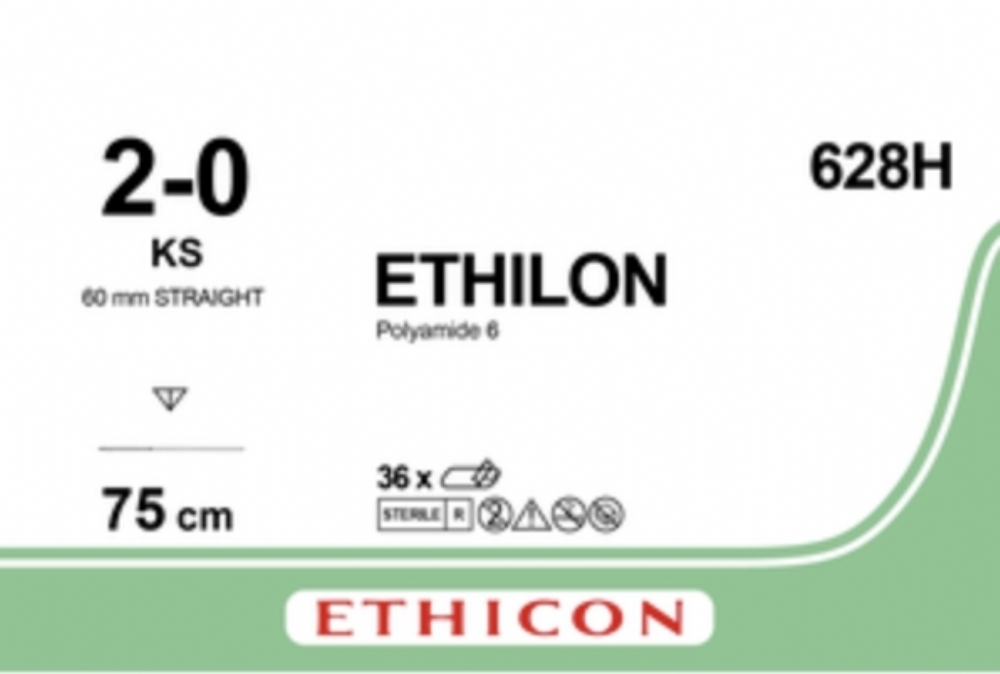 Ethicon ETHILON™ Black Monofilament Non-Absorbable Surgical Suture – USP 2-0 – 30 in (75 cm) – Black – KS Reverse Cutting Needle 19 mm – 3/8 Circle – 628H (Box of 36) Ethicon ETHILON™ Black Monofilament Non-Absorbable Surgical Suture – USP 2-0 – 30 in (75 cm) – Black – KS Reverse Cutting Needle 19 mm – 3/8 Circle – 628H (Box of 36)