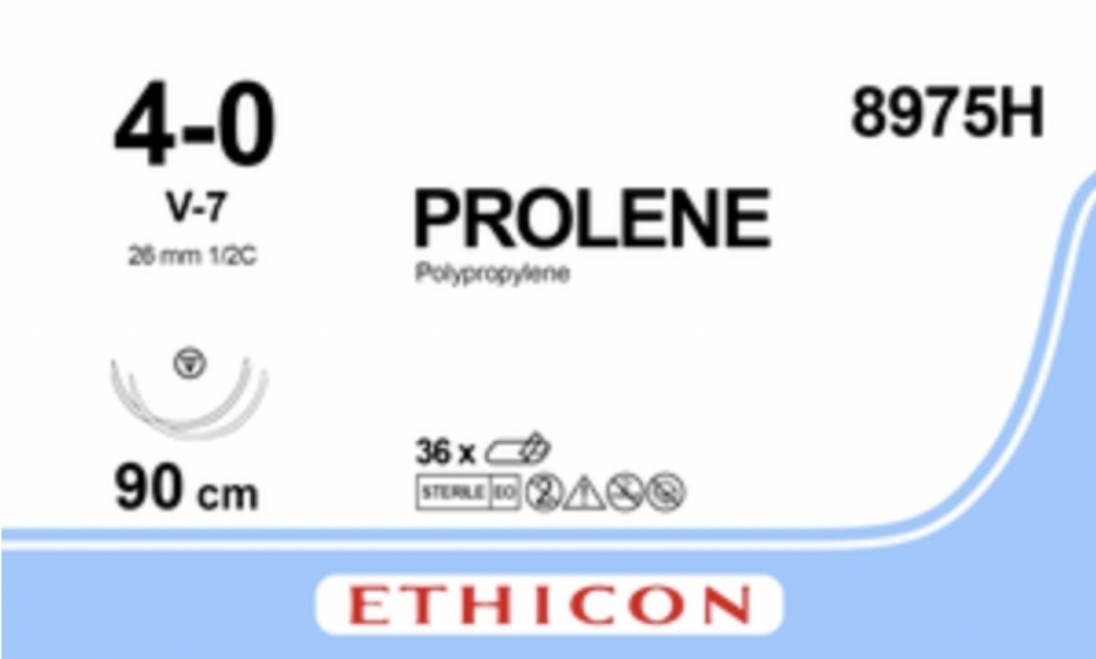 Ethicon PROLENE® Polypropylene Blue Non-Absorbable Surgical Suture – USP 4-0 – 90 cm (36 in) – Double-Armed V-7 Tapercut Needles – 8975H (Box of 36)