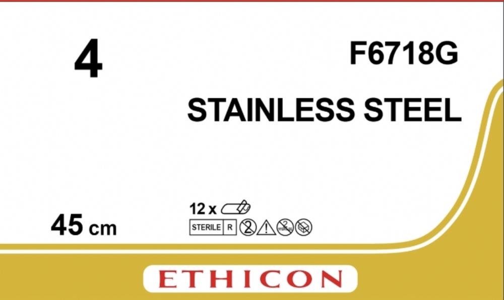Ethicon Surgical Stainless Steel Non-Absorbable Ligature – USP 4 – 45cm – Silver – Needleless (NN) – Animal Health – F6718G (Box of 12)