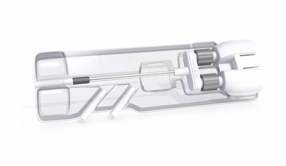 The applicator allows precise and controlled distribution of sealant, helping surgeons apply the product effectively to bleeding tissue surfaces during minimally invasive procedures.