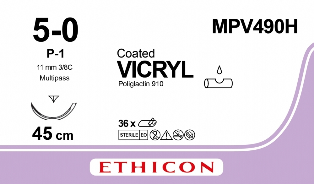 Ethicon VICRYL PLUS Polyglactin 910 Braided Absorbable Antibacterial Surgical Suture – USP 5-0 – 45 cm – Undyed – Single-Armed Reverse Cutting Prime Needle 13 mm, 3/8 Circle – MPV490H (Box of 36) Ethicon VICRYL PLUS Polyglactin 910 Braided Absorbable Antibacterial Surgical Suture – USP 5-0 – 45 cm – Undyed – Single-Armed Reverse Cutting Prime Needle 13 mm, 3/8 Circle – MPV490H (Box of 36)