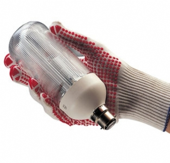 100% nylon seamless inspection glove with PVC dot coating (in white and grey colours)
