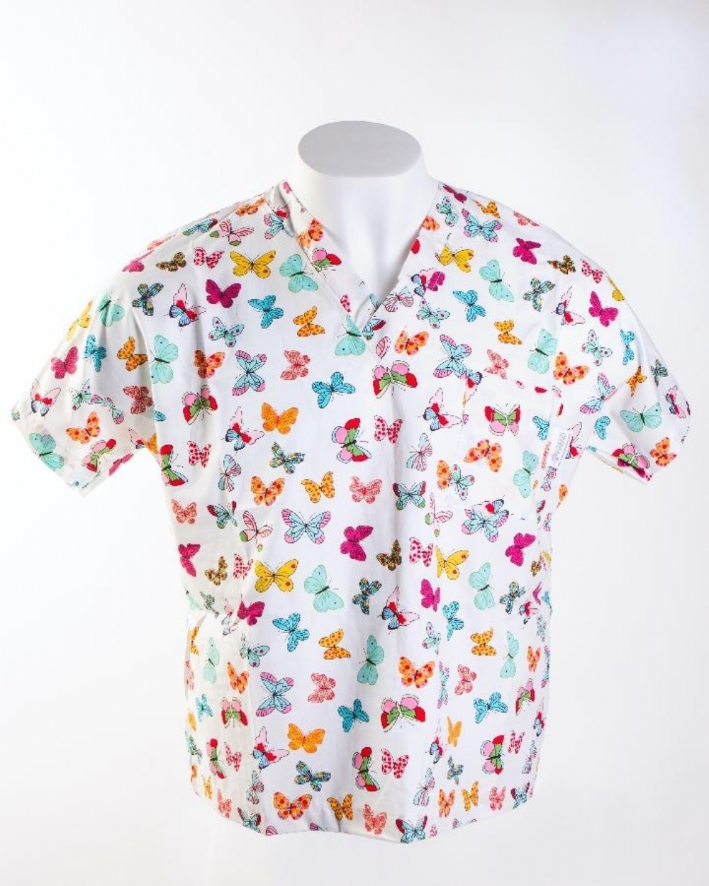 Multi Coloured Butterflies Short Sleeve Scrub Top 100% Cotton