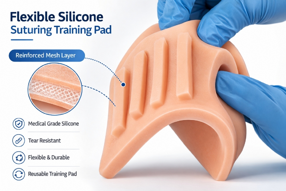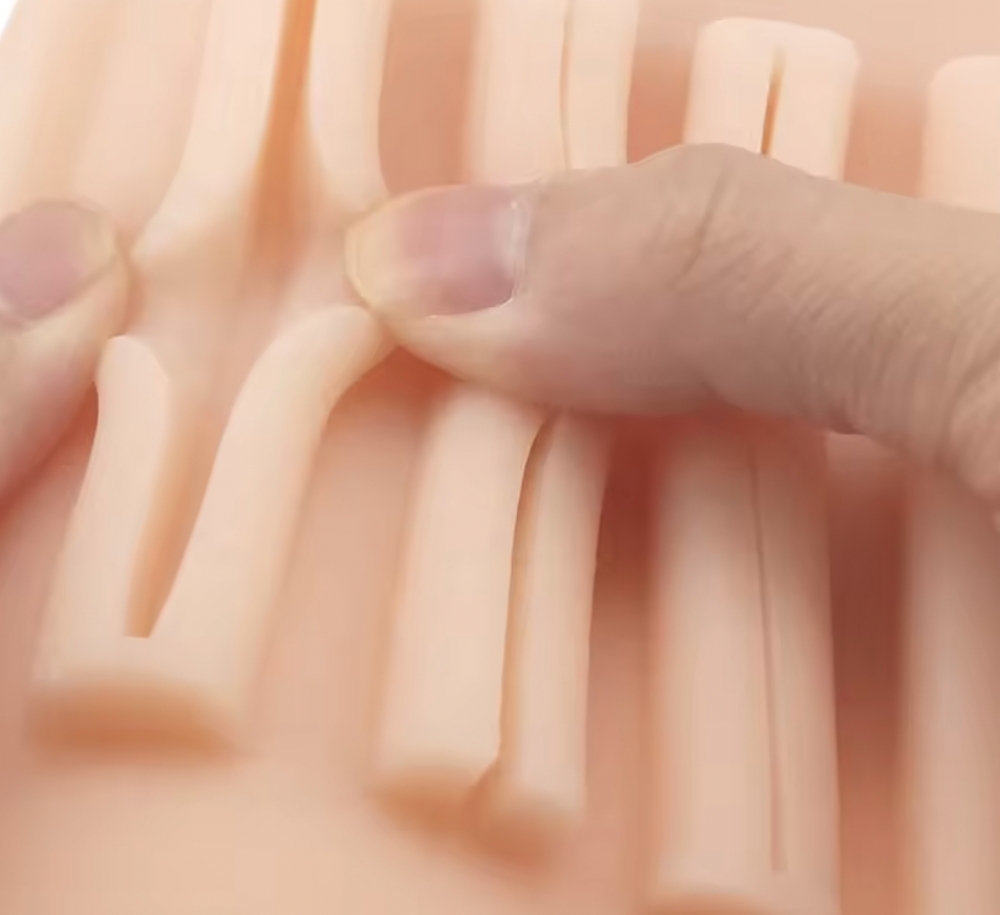 Manufactured from high-quality silicone, the model replicates the texture and resistance of human soft tissue, allowing trainees to practise surgical suturing techniques in a realistic simulation environment.