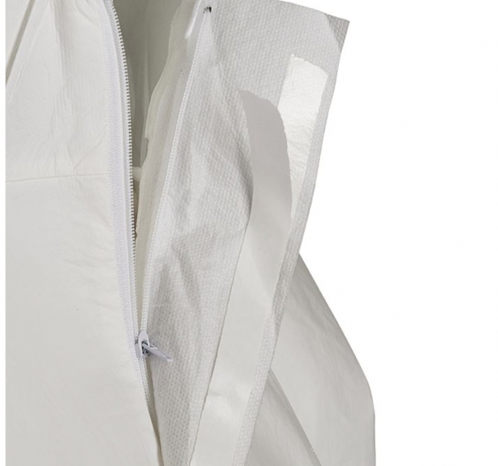 For secure coverage and practical use, the coverall features an elasticated hood, cuffs, and ankles to help minimise contamination risk and maintain a close fit. A front zip fastening allows quick donning and removal, supporting efficient changeovers and hygiene control procedures.