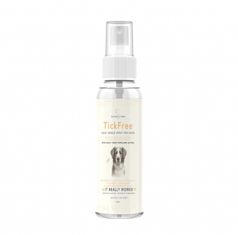 The spray is lightweight, non-sticky and easy to brush through the coat, leaving a natural fresh scent while supporting coat condition. Unlike many chemical insect repellents, TickFree is formulated without DEET, parabens or synthetic fragrances.