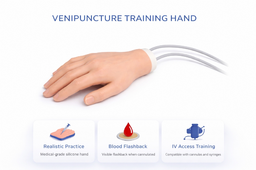 Venipuncture training hands are widely used in nursing schools, medical universities and clinical skills laboratories to teach safe injection and blood sampling techniques.
