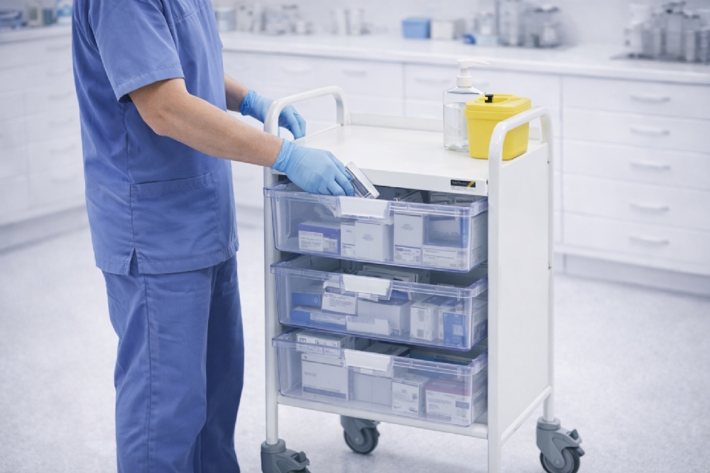 The Vista medical/storage trolley, featuring clear trays, is ideal for general-purpose use in a range of medical environments, including hospitals, health centres and GP surgeries. Standard-size trolley for general primary and secondary care.