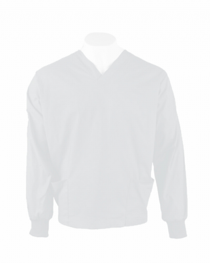 White Long Sleeve Scrub Top Elastic Cuff 100% Cotton